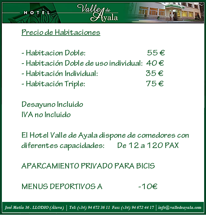 Para la gente que vengáis a alojaros, los alojamientos oficiales de la prueba son el hotel Valle de Aiala y Hotel Errekagain.