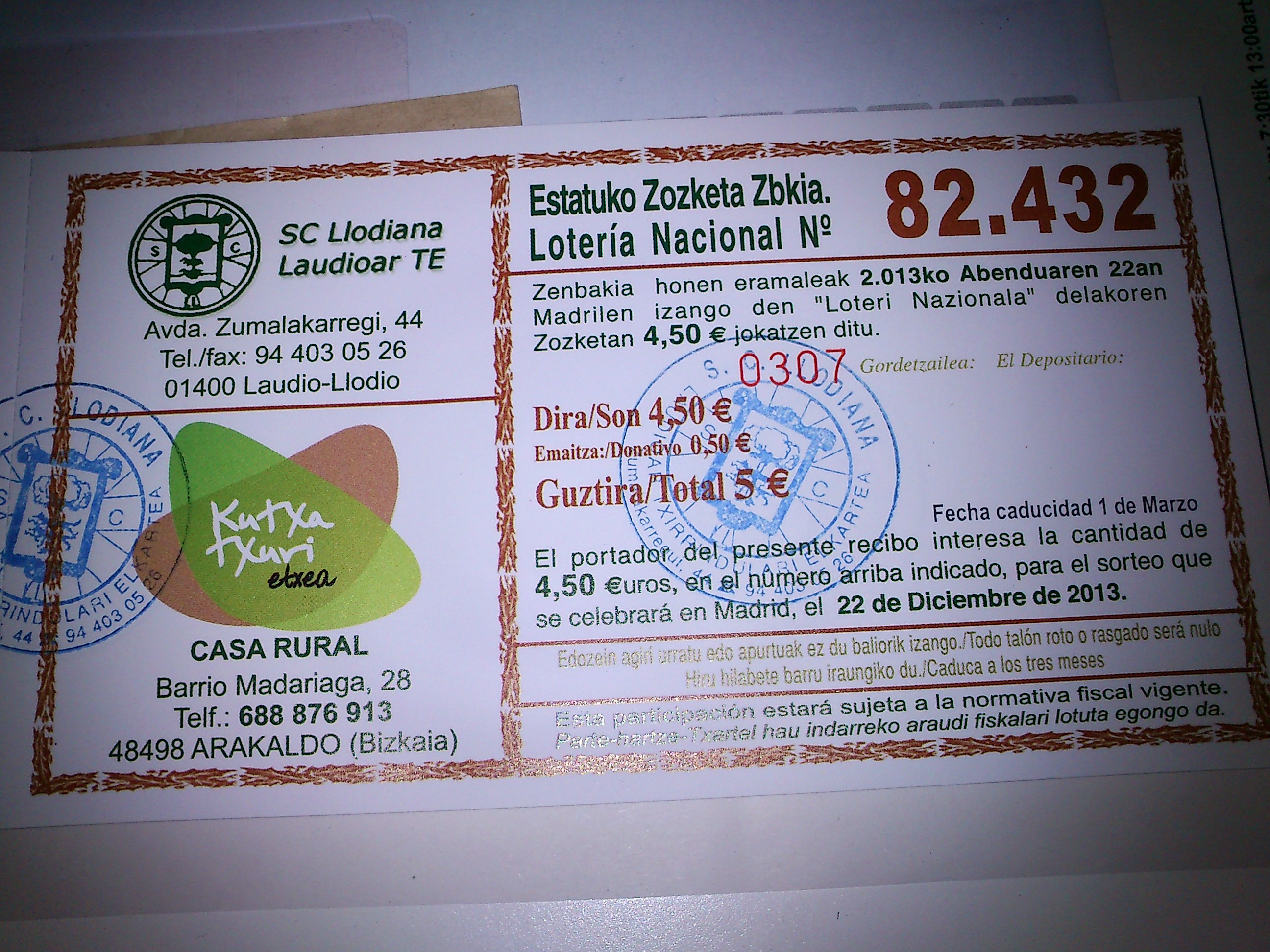 Se han hecho participaciones de 5 €, con 0,50 de donativo a la sociedad.